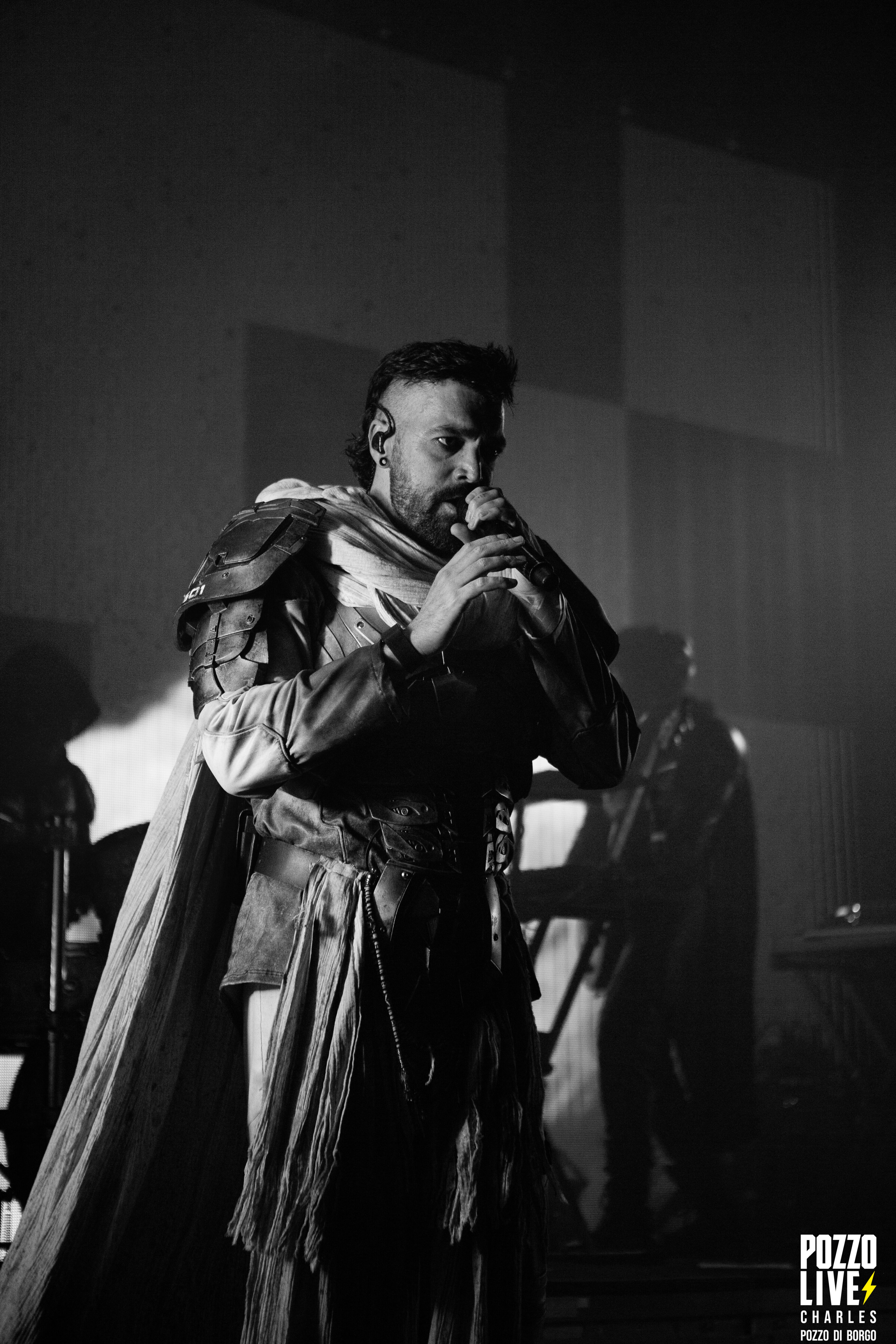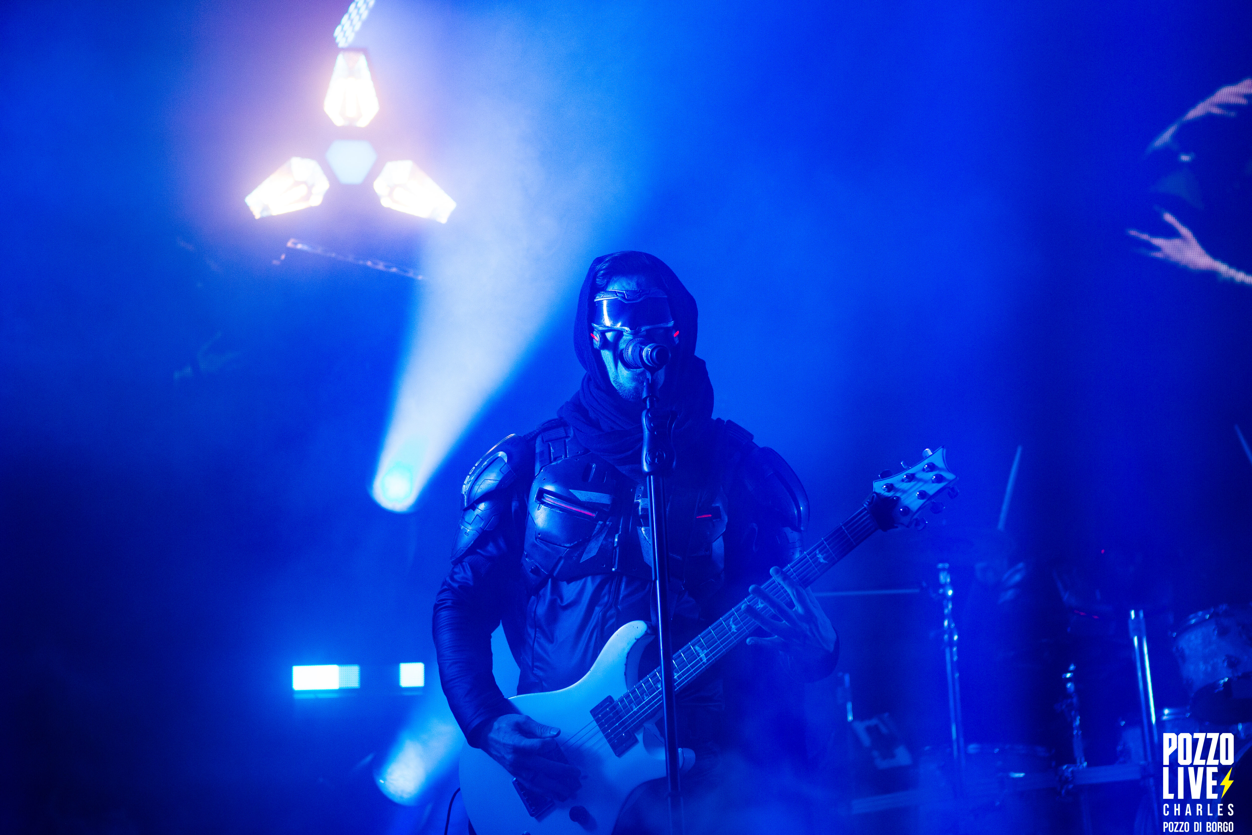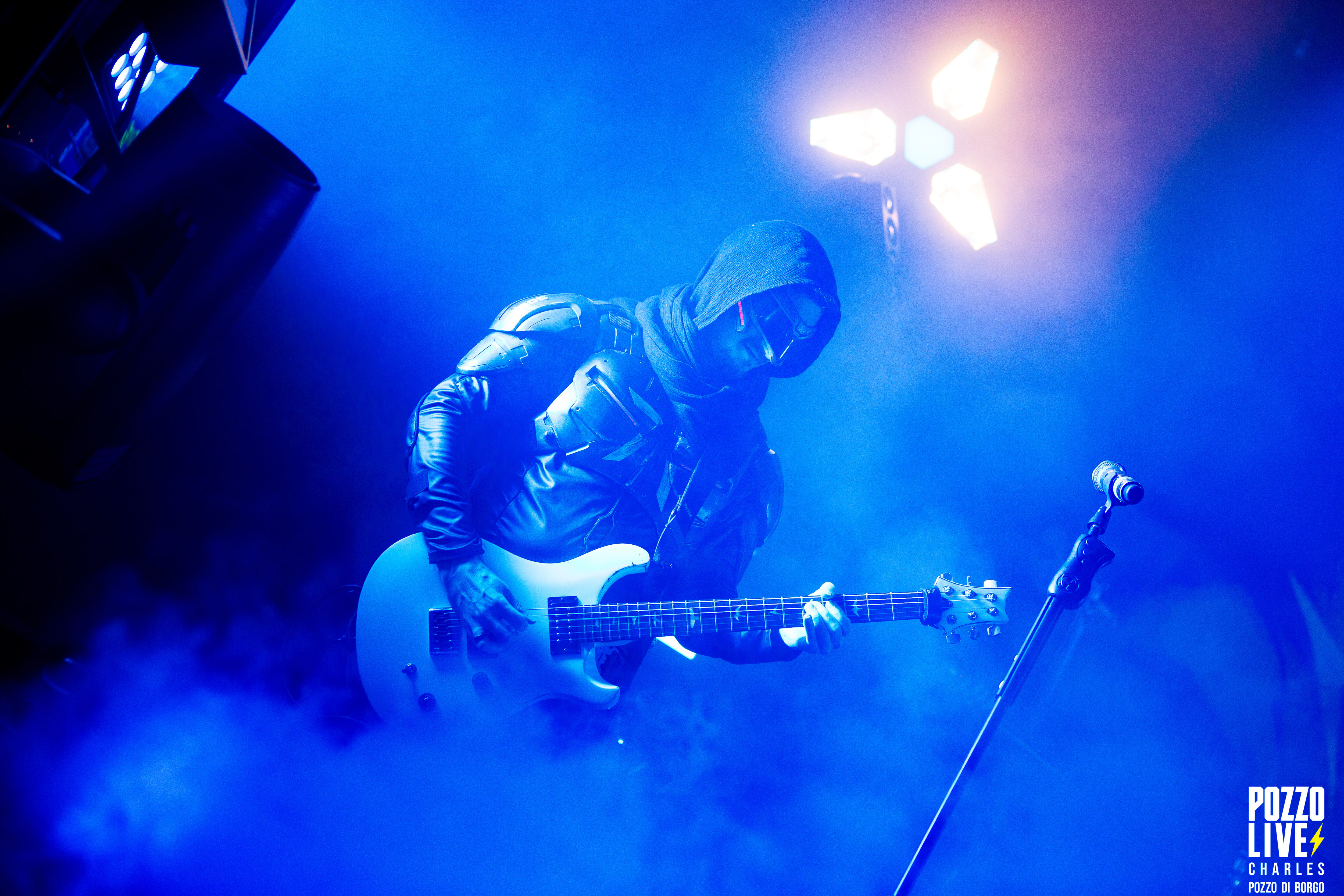 Après une cinématique (en avant et fond de scène) introduisant une histoire, le groupe entre en costume/armure semblant sortir tout droit d’un jeu vidéo. Casque sur la tête, le chanteur Dustin Bates entonne les hits Unbecoming et Carnivore. Ce n’est que pour Manifest qu’il découvre sa tête et nous salue chaleureusement en fin de chanson.