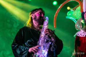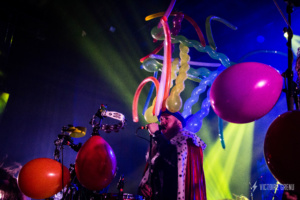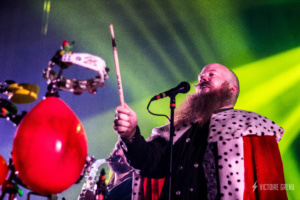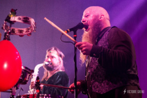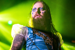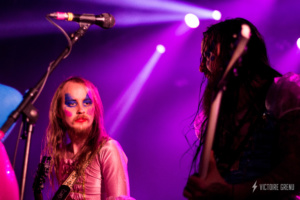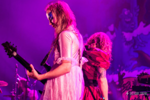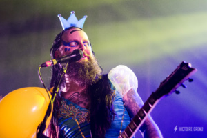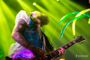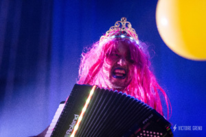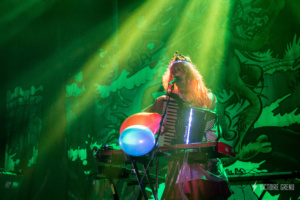 Micros ornés de ballons et festival de couleurs sont de mise avant même l’entrée sur scène du premier groupe. Trollfest ouvre le bal dans une salle à moitié remplie, mais l’ambiance est là. Les musiciens se sont parés de leurs plus belles robes de princesses, chaussures lumineuses et couronnes tout droit sorties des plus mignons contes de fée. Le groupe joue sa célèbre version de Toxic de Britney Spears au début du set pour annoncer la couleur : un groupe déjanté, festif, explosif, mais restant précis et technique !