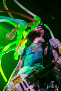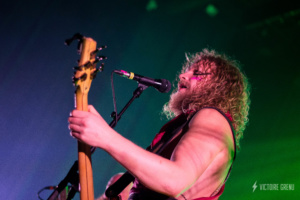Durant son passage sur scène, le groupe enchaînera les notes d’humour. Dans un premier temps, Trollmannen nous… trolle… en annonçant une balade. Résultat : le groupe joue son morceau le plus violent ! Ensuite, c’est une tentative de record qui prend place sous nos yeux ébahis : la plus grande queue-leu-leu du monde est demandée. Il n’aura pas fallu beaucoup de temps pour qu’un guitariste ne saute dans la foule pour mener la chenille. De la fosse à la terrasse extérieure, en passant par les bars, les toilettes et la régie… Le spectacle est hilarant, mais d’après les comptes de notre huissier, le record est invalidé. Les musiciens enchaînent les danses sur scène, en duo ou en solo (danse du backpack kid), dans une ambiance festive, chantante, et chaleureuse.
