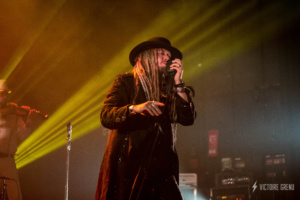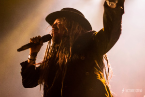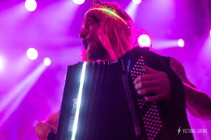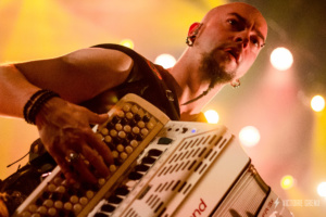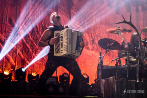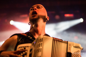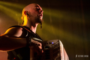 Enfin, le dernier groupe s’avance. Korpiklaani entre sur scène dans une salle comble. Depuis 1993, le groupe de folk finlandais évolue dans un univers mêlant forêt finlandaise, légendes, nature et… alcool ! Le public français est fidèle à l’apéro, et sait reconnaitre les groupes qui lui parlent des plaisirs de la vie. Il n’y a qu’à voir les tshirts parmi la foule : une grande majorité du public est venue pour eux !