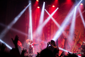 Sur scène, le groupe associe maquillages rouge sang et noir, guitares électriques, et poésie. Quel bonheur d’entendre un violon dans un groupe de metal ! Le groupe joue des titres phares tels que Stand Up And Fight, ou encore Rasputin (reprise de Boney M), mais nous propose aussi une balade riche en émotion lors du set : les membres assis sur des chaises pour jouer, en arc de cercle, comme s’ils nous contaient simplement une histoire. Turisas nous a fait plonger dans son univers en un rien de temps et je vous assure que ce n’est pas facile d’en sortir ! Entre récits de guerres, ode au courage et impression d’incarner le personnage principal d’un conte épique, le public est revigoré.