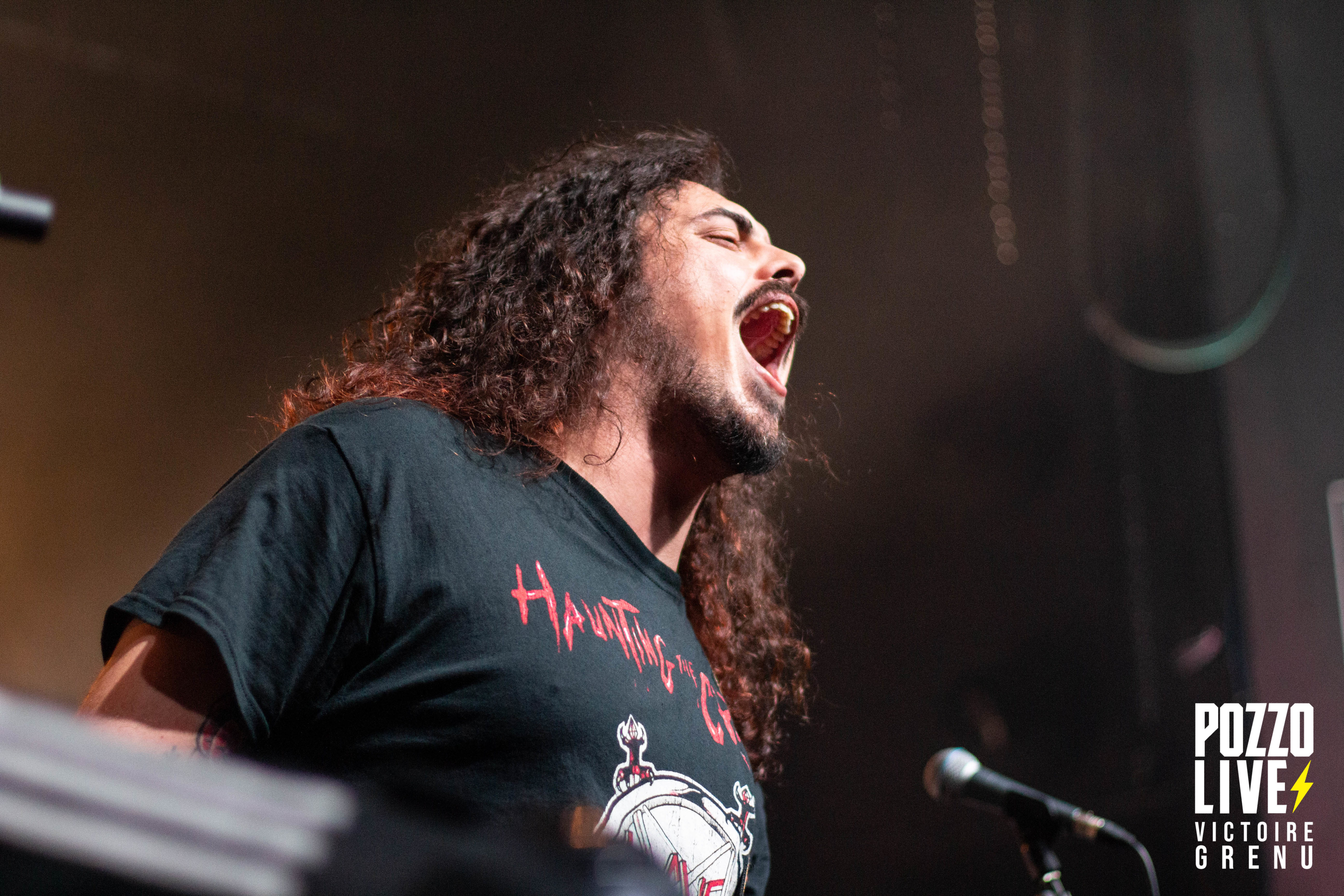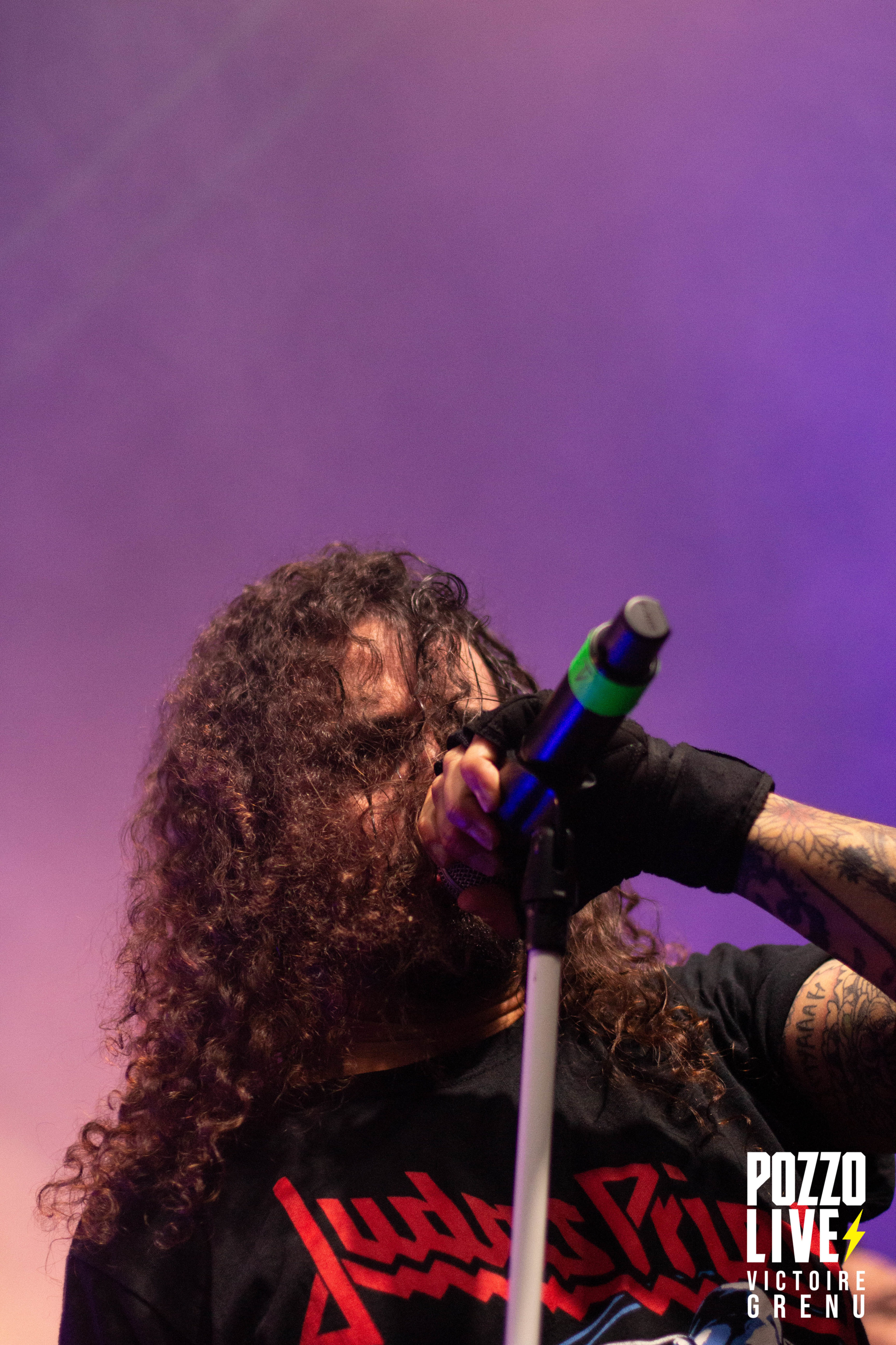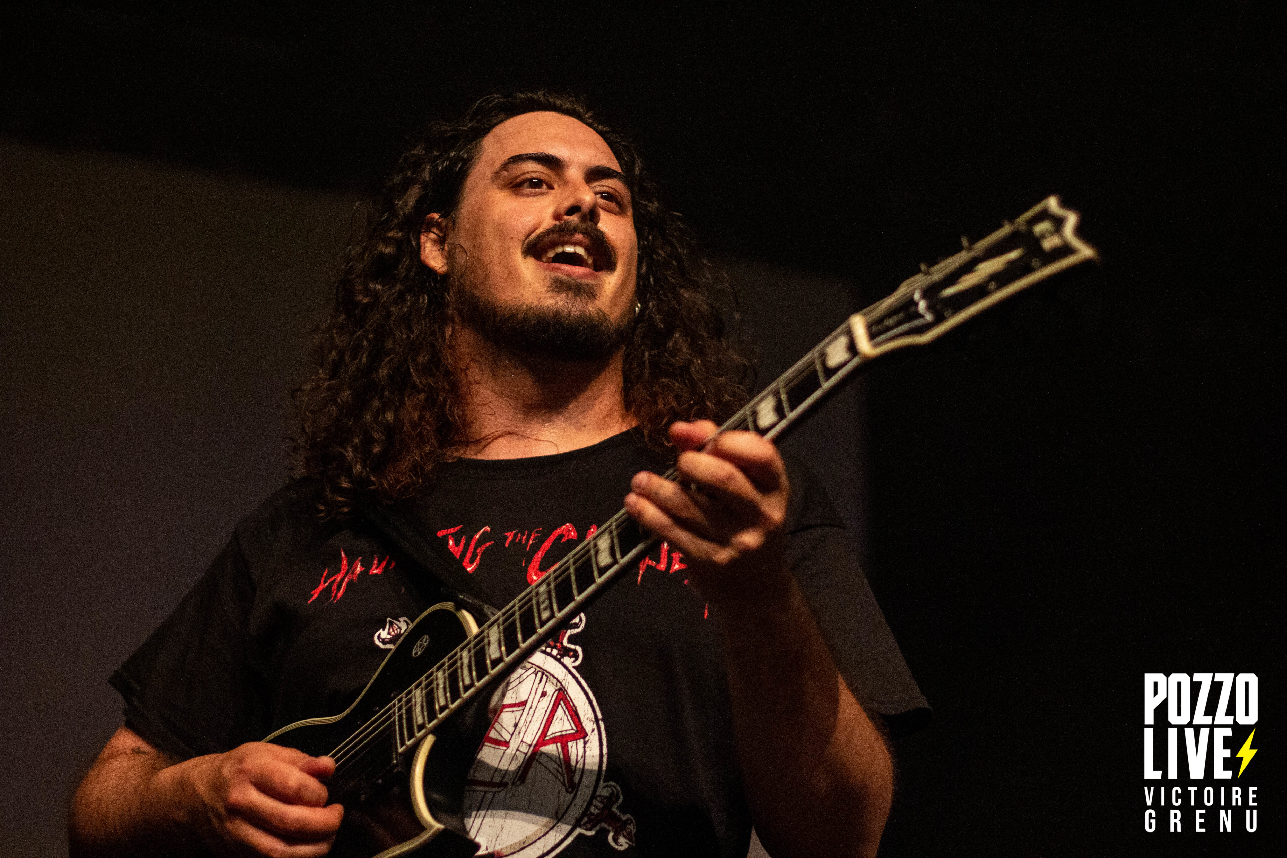 22h25 : premier concert de la soirée. Les espagnols de Crisix (thrash) montent sur scène, et la fosse s’enflamme. A peine le temps de souffler, les premiers pogos sont lancés à la grande surprise de certains spectateurs. Ceux-ci ne s’arrêteront qu’à 00h à la fin de la soirée. Quel plaisir de retrouver une ambiance Hellfest après ces 3 années si particulières ! Les musiciens de Crisix dégagent une énergie impressionnante, mêlant à leur musique des notes d’humour et des échanges avec le public. Les fans de Crisix sont très nombreux ce soir à la Rock School : munis de leurs casquettes, t-shirts et patchs Crisix, ils reprennent les moindres couplets et refrains à l’unisson en sueur dans le pit.
