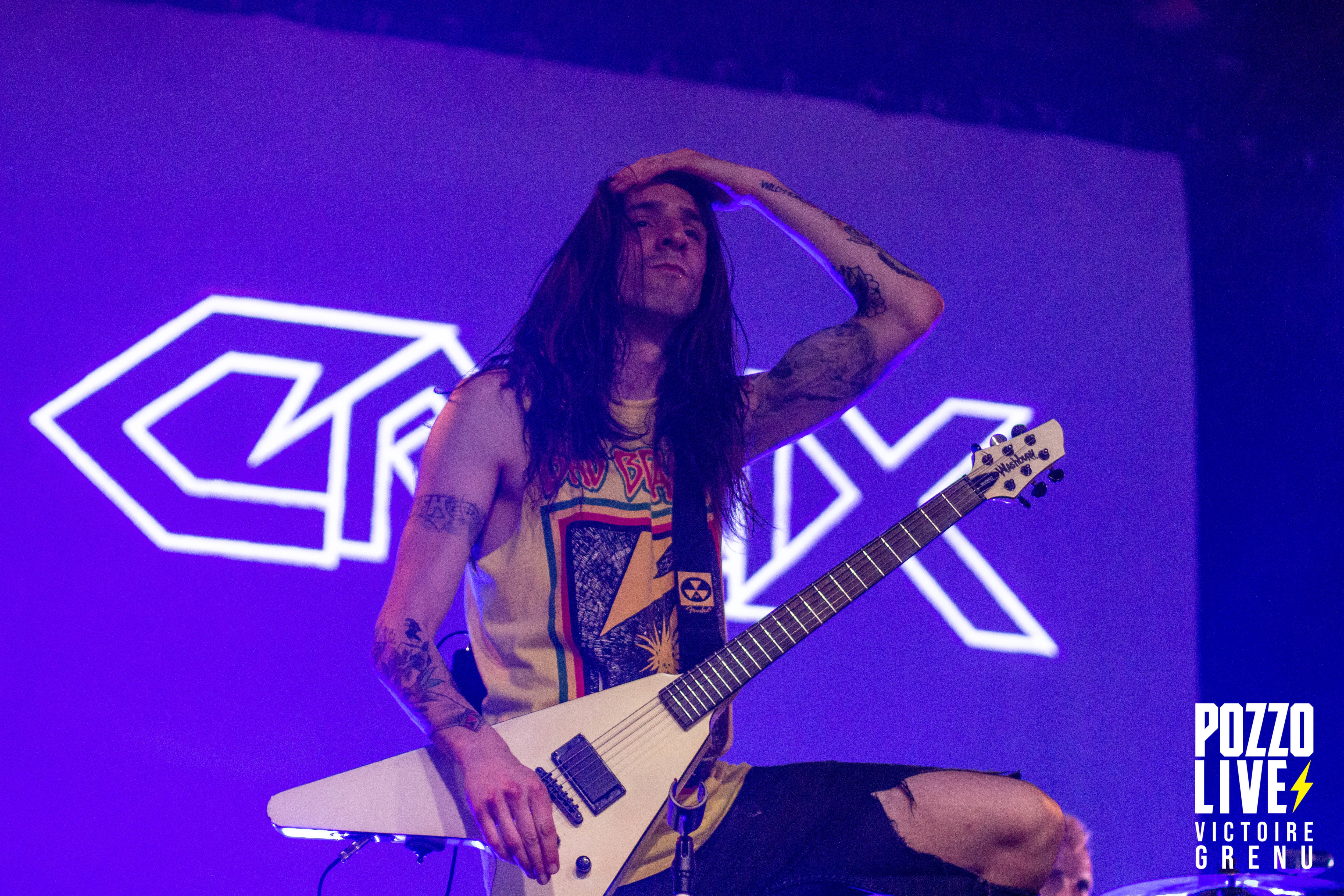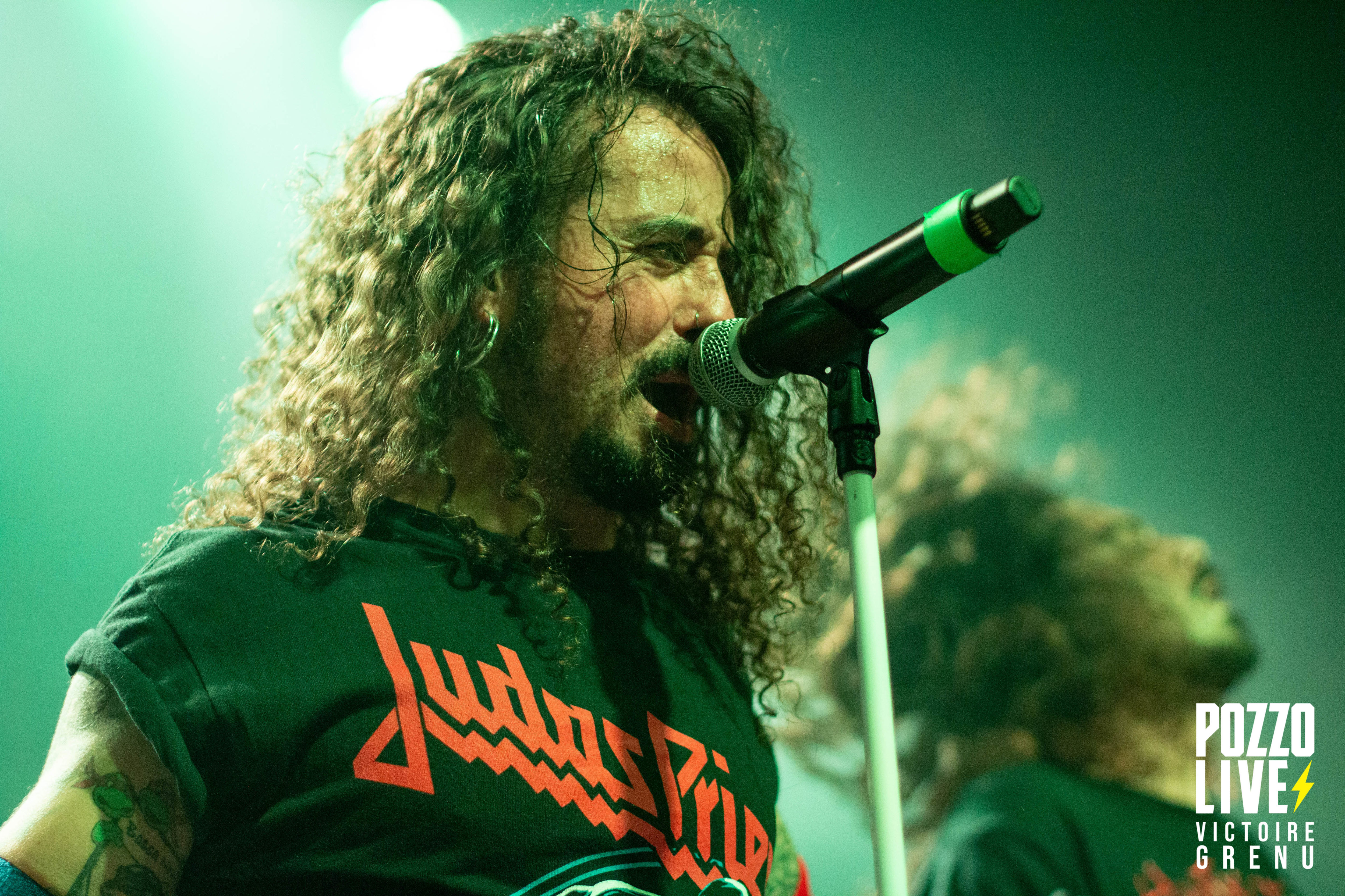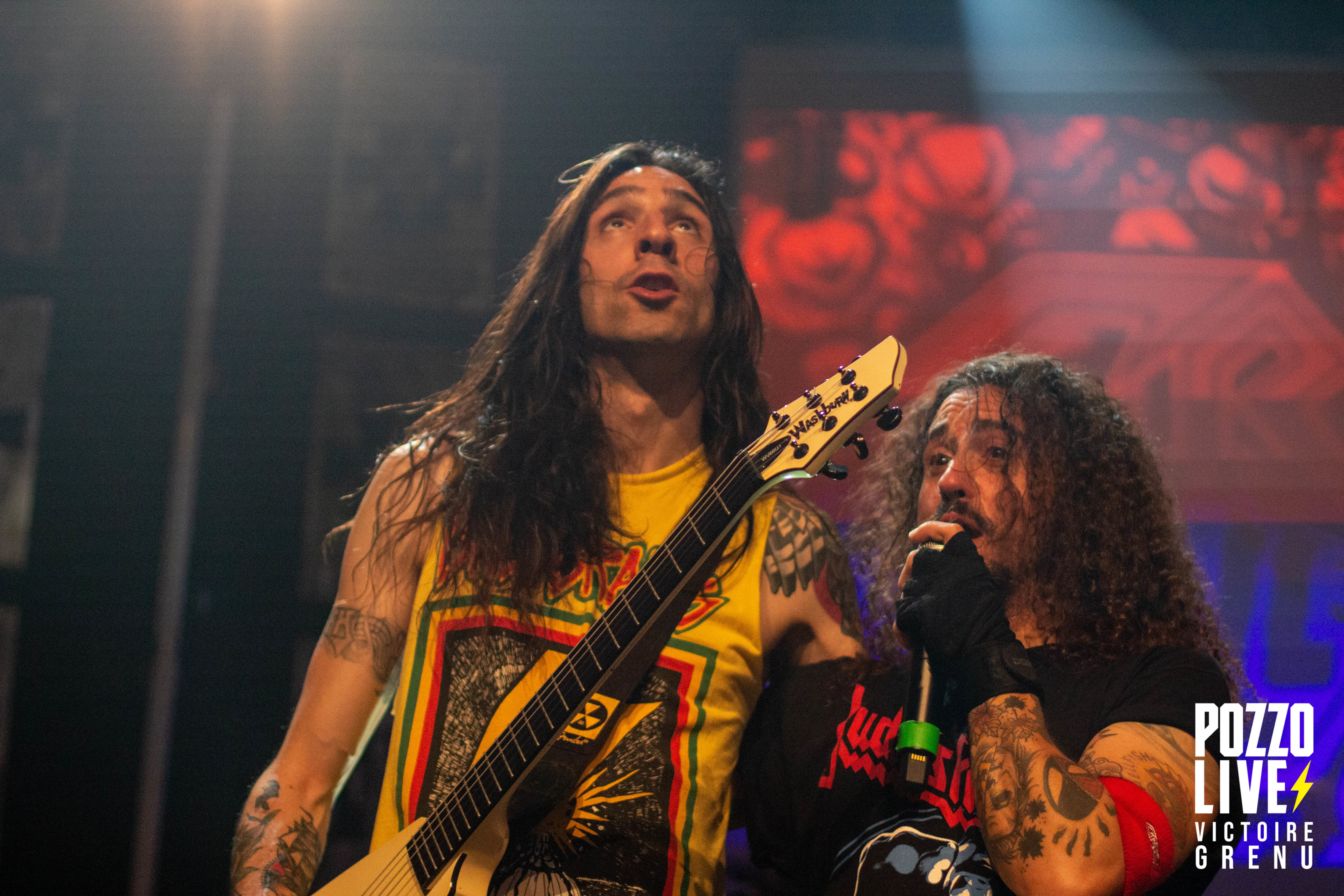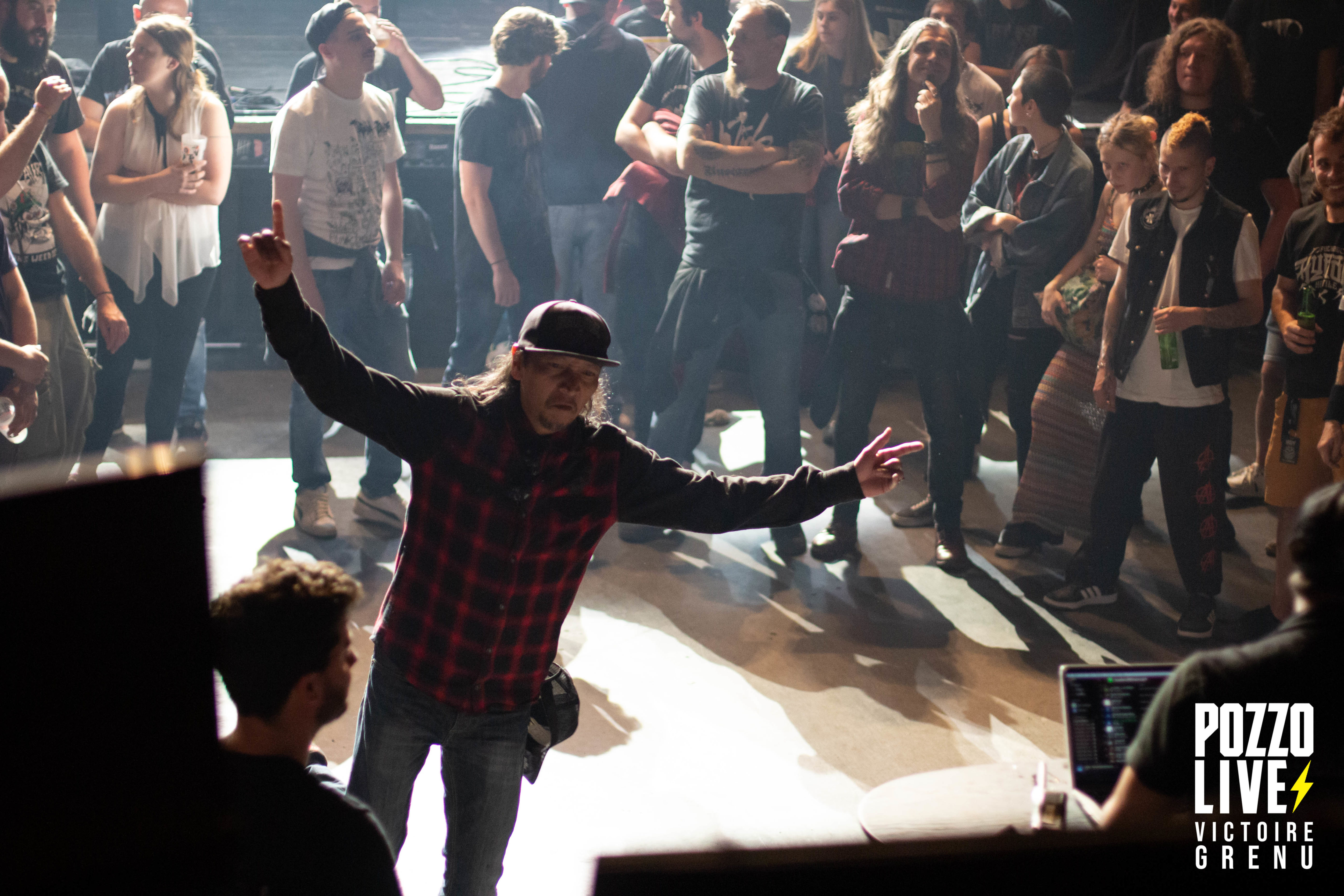 22h25 : premier concert de la soirée. Les espagnols de Crisix (thrash) montent sur scène, et la fosse s’enflamme. A peine le temps de souffler, les premiers pogos sont lancés à la grande surprise de certains spectateurs. Ceux-ci ne s’arrêteront qu’à 00h à la fin de la soirée. Quel plaisir de retrouver une ambiance Hellfest après ces 3 années si particulières ! Les musiciens de Crisix dégagent une énergie impressionnante, mêlant à leur musique des notes d’humour et des échanges avec le public. Les fans de Crisix sont très nombreux ce soir à la Rock School : munis de leurs casquettes, t-shirts et patchs Crisix, ils reprennent les moindres couplets et refrains à l’unisson en sueur dans le pit.
