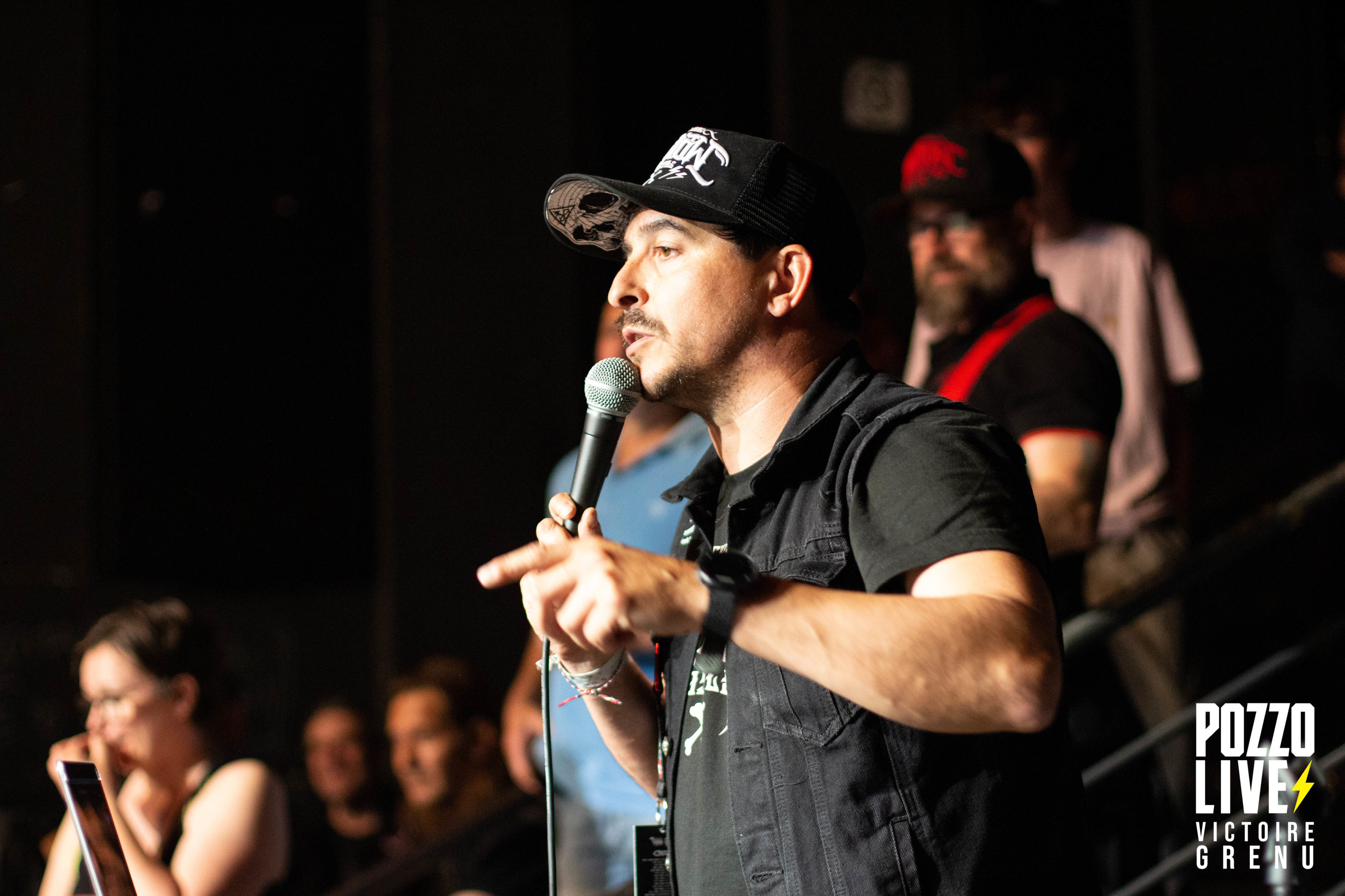 00h00 : suite et fin de ce concours de Air Guitar ! Ils sont finalement 4 et ont des surnoms incroyables. Retrouvons Panpan, Strapontin, Super Chinois, et Mario pour ce dernier round ! Pour cette finale, tout se jouera sur un morceau de Crisix. De nombreux soutien-gorge et caleçons s’abattent sur les musiciens en herbe… Mise en scène avec les copains, roulades au sol, accessoires… Tout est bon pour gagner des points et le cœur du jury composé de Albert Requena Mateu et Javi « Carry » Carrión López de Crisix, ainsi que Waner de Tagada Jones. Après délibération, c’est Panpan qui gagne ce concours bordelais de Air Guitar signé Hellfest ! Il remporte son pass Hellfest, tout comme Mario arrivé 2ème (nous sommes ravis car aux yeux de Pozzo Live, Mario était notre chouchou). Ovation et session slam pour les 2 gagnants du jour !