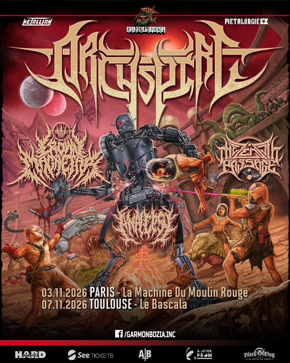 Au final, ce passage d’Archspire en France ressemble à un petit événement pour tous ceux qui vivent au rythme des blasts et des plans techniques. Entre tech death supersonique, deathcore ravageur, délires cosmiques et slam écrasant, le plateau a tout pour devenir un des rendez-vous les plus intenses de novembre 2026. Donc, si tu cherches une nuit où la vitesse, la précision et la violence sonore se donnent la main, tu sais déjà où tu seras début novembre.