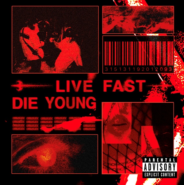 Avec « LIVE FAST DIE YOUNG », Comastatic passe la vitesse supérieure. Ce premier album, qui arrive le 8 mai 2026 via le label Hopeless Records, apparaît comme la matérialisation de la vision imaginée par le duo en 2022. Le titre annonce la couleur : un disque qui flirte avec l’urgence, la fuite en avant et les contradictions d’une époque qui brûle la chandelle par les deux bouts.