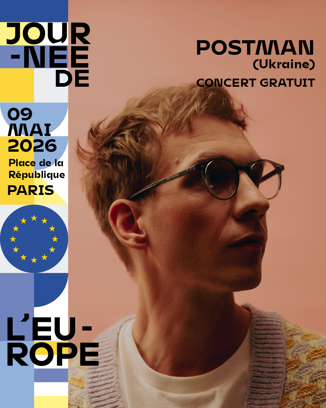 Postman sera à Paris pour la Journée de l’Europe et montera sur la scène installée place de la République le 9 mai, à partir de 18h30. Il partagera l’affiche avec d’autres artistes, dont Solann et Valeria Stoica, pour une soirée placée sous le signe de la diversité européenne. Le concert sera en accès libre, idéal si tu as envie de découvrir son univers en live.