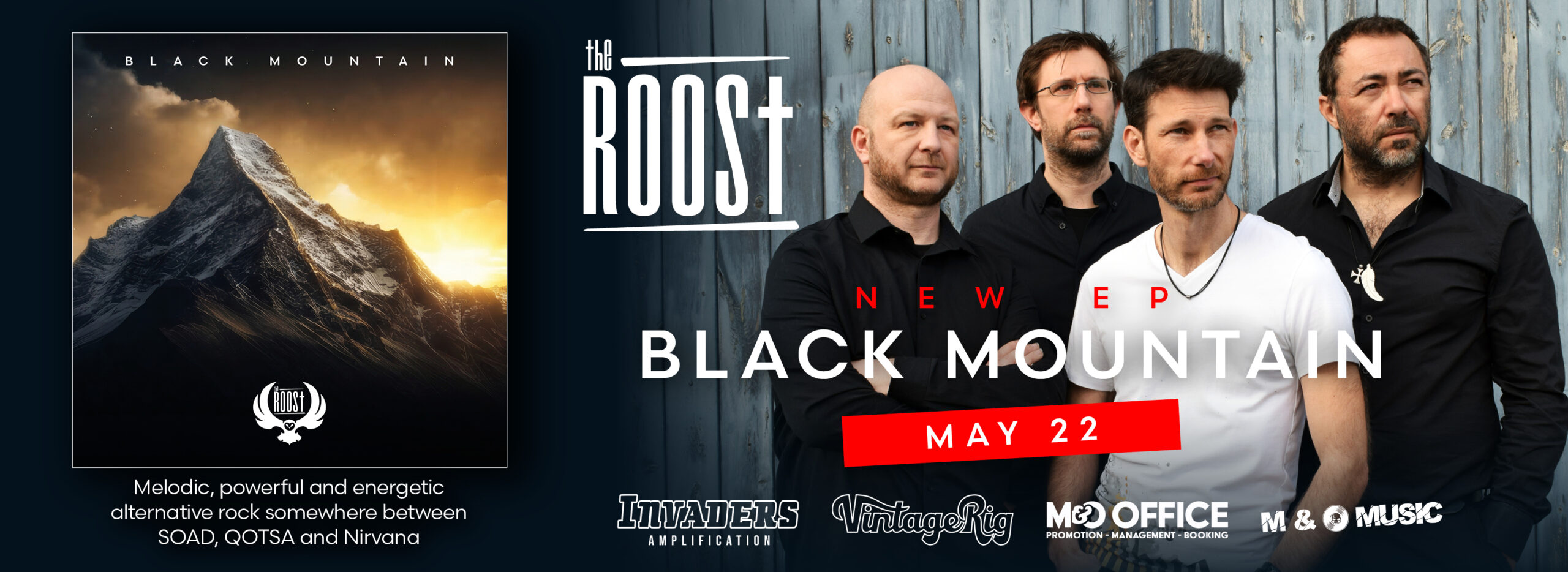 Avec “Black Mountain”, The Roost annonce vouloir franchir un cap. Ce nouvel EP six titres, attendu pour le 22 mai 2026, se présente comme un projet plus abouti, plus moderne dans son approche, où le travail de production vient servir des compositions affinées au fil des années.