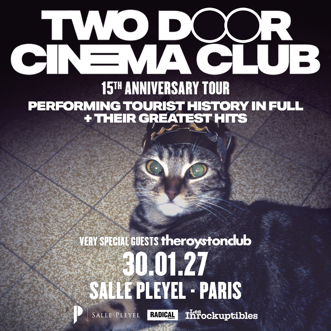 Prépare ton cardio indie rock : Two Door Cinema Club débarque à Paris pour souffler les 15 bougies de Tourist History. Oui, déjà. Tu te rappelles la première fois que tu as entendu What You Know ? Ce riff qui te colle au crâne, ces refrains qui t’obligent à bouger, même dans le métro. En 2027, le trio nord-irlandais vient rejouer ce classique de fond en comble à la Salle Pleyel, histoire de transformer une soirée hivernale en énorme madeleine de Proust version indie.